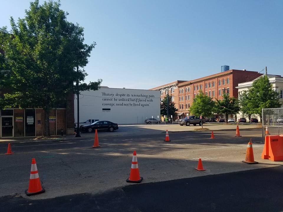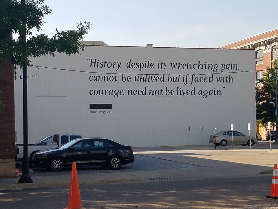 Walking near our hotel tonight, we saw the wall of a nearby building painted with a quotation from Maya Angelou that captures something about the endeavor.