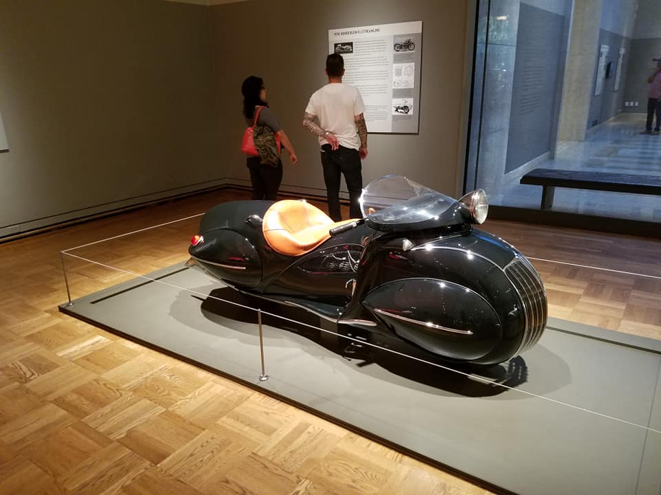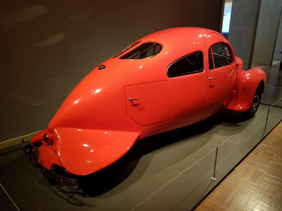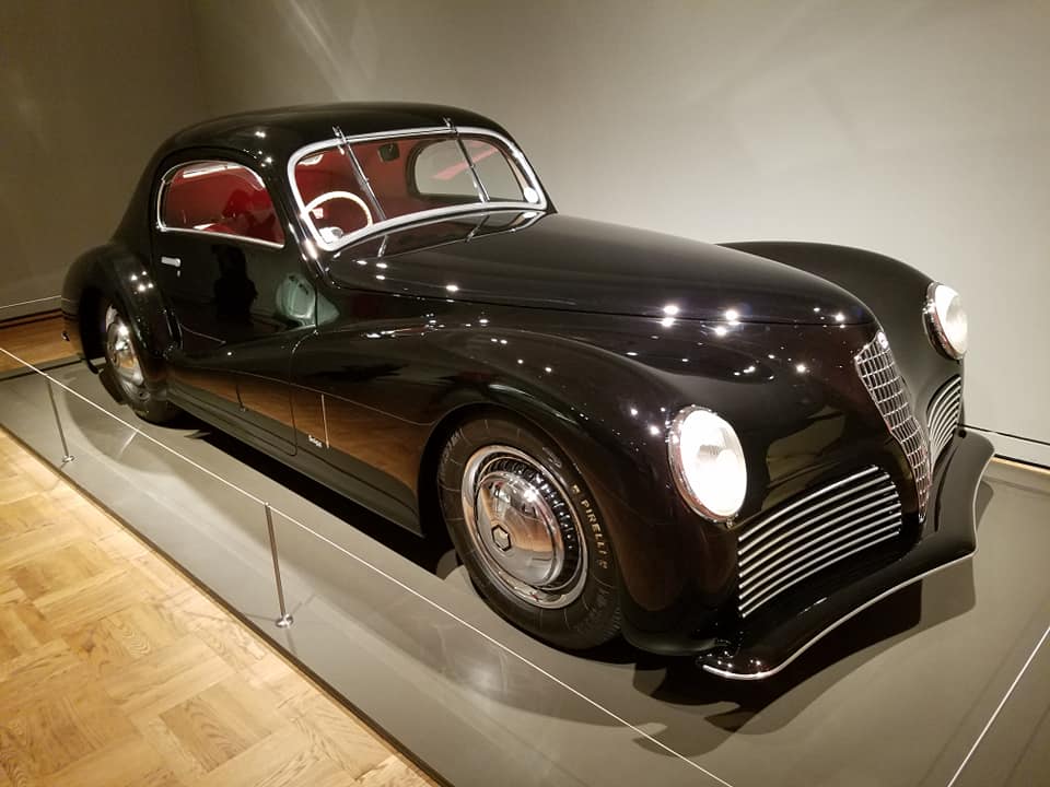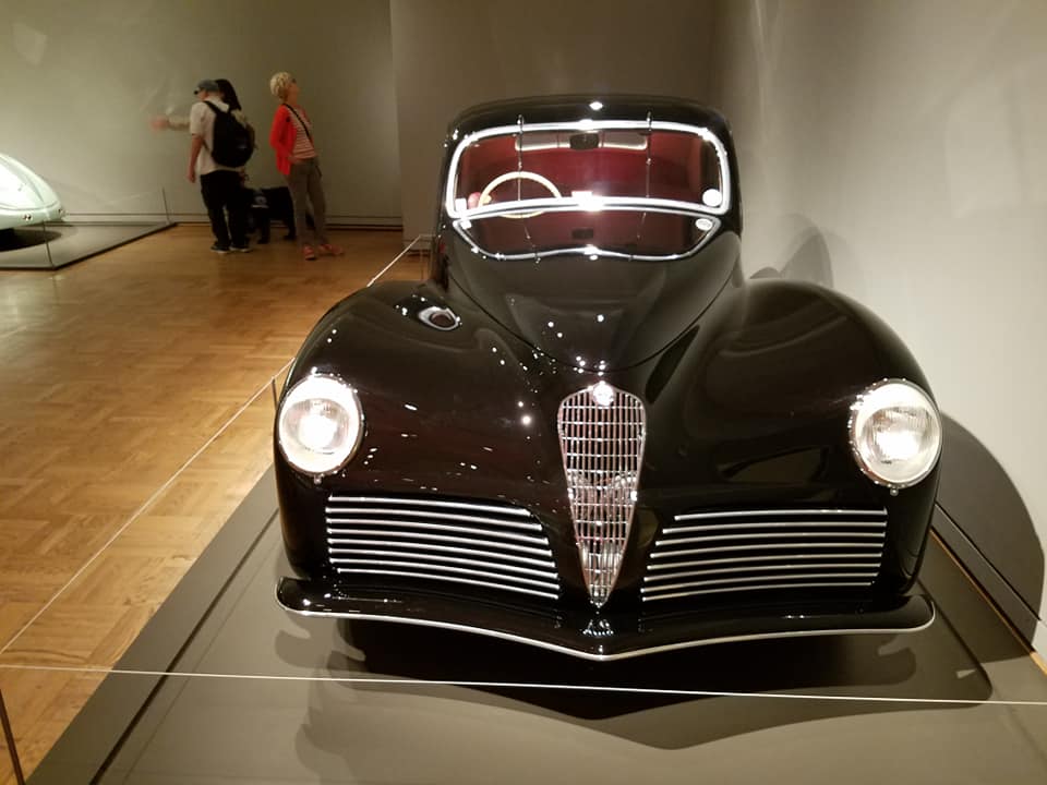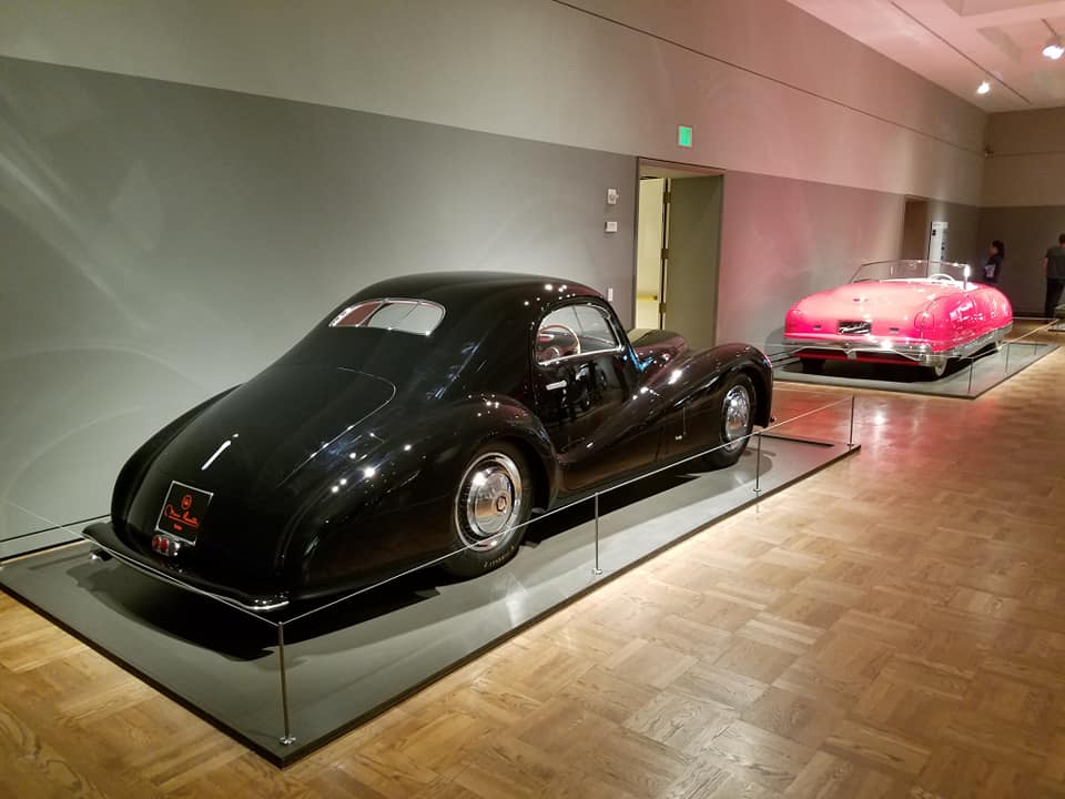 One of several exhibitions at the Portland Art Museum consists of cars. — Really, really wild cars. — Cars that will make you yearn for the days of extravagant tailfins and jet-blast brake lights. Here are some of the photos Jimand I took when we visited the “Shape of Speed” this afternoon on our tour of Oregon’s largest city.