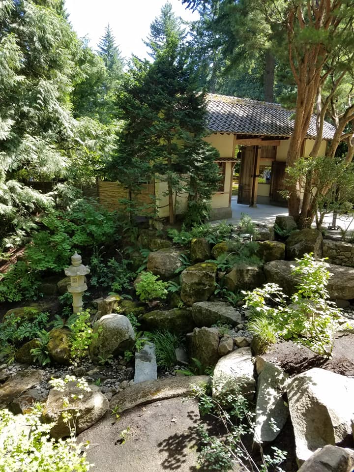 It is a tranquil place full of simple beauty. Jim and I enjoyed strolling through the gardens this afternoon on a clear sunny day. It was hot by Oregon standards, but I still wore long sleeves all day long.