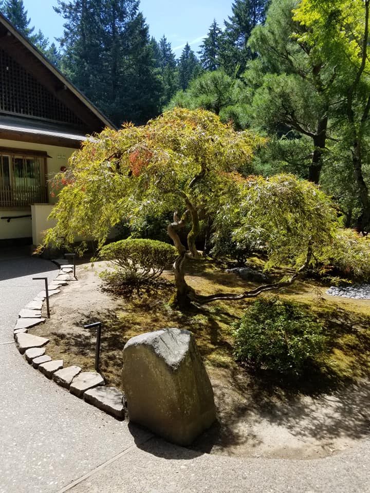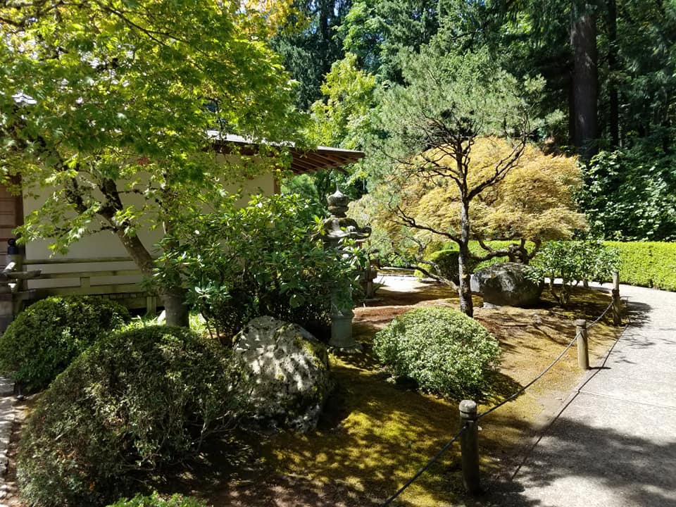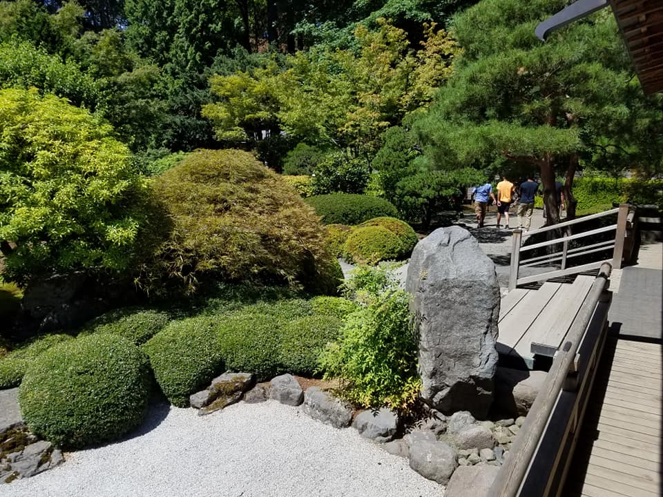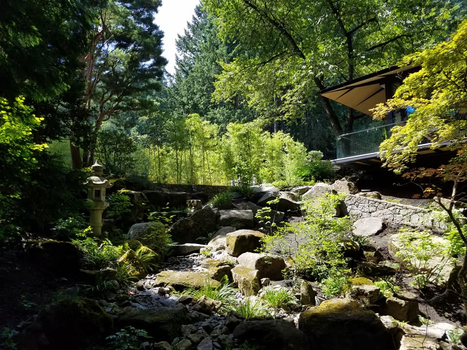The Portland Japanese Garden looks out over the city and Mount Hood. It sits on the West Hills in the Washington Park area amid some of the city’s earliest hillside mansions and the nearby Rose Garden.
