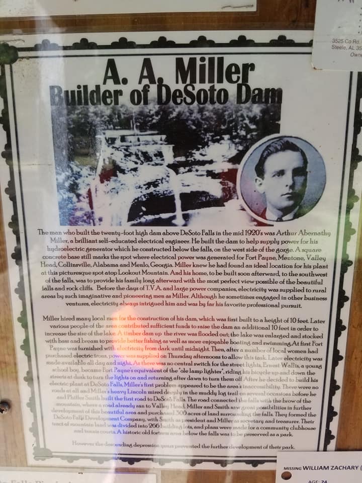 Arthur Abernathy Miller built the DeSoto Falls dam for hydroelectric power in the mid-1920s. He had grand dreams.